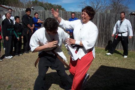Students are expected to learn to look at there opponents as targets from the top of their head to the tips of their toes. Students train and develop so that they can learn to "Completely Control" there opponent/s... even if only for a few seconds. Students are taught to take their opponent/s to the ground quickly, secure them momentarily, stun them and escape from the area, before the opponent/s can recover and re-attack the student. This training is conducted at all levels and at all ages, techniques are used to benefit the student based on their individual weaknesses and strengths. Obviously a child of 8 does not possess the same abilities in regard to size and strength as a 28 year old may possess, but the members of JYY find that the techniques used for their abilities can be just as effective.